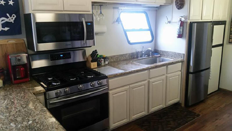 Also wanted to add a photo of the galley now its finished. New Refrigerator added November 2016