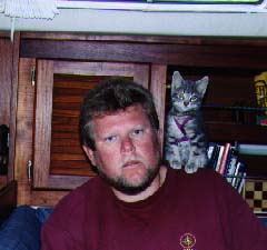 Pictured here with my cat Hootie, when he was a kitten, and he spent time on the boat.