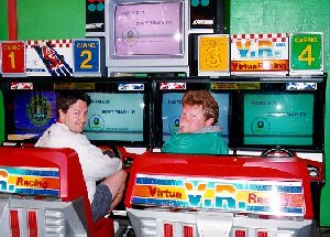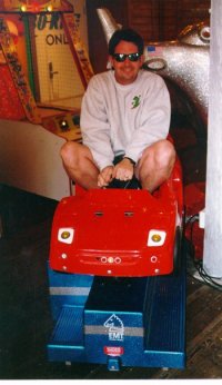 bud Gary, and I amusing ourselves behind the wheel at an arcade on Pier