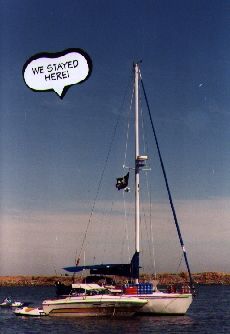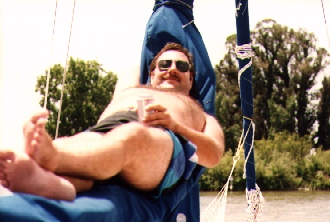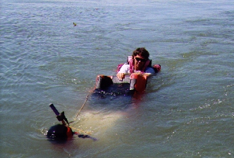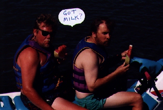 During a morning cruise we found a sunk jet ski, Bob jumped in and we towed it to shore and called the Coast Guard, as it seems some young girl did not know how to tie a good knot. Always remember rule #43. If you can't tie a good knot, tie allot of them! After all the excitement we stopped for a watermelon break, as we had no Jell-O.