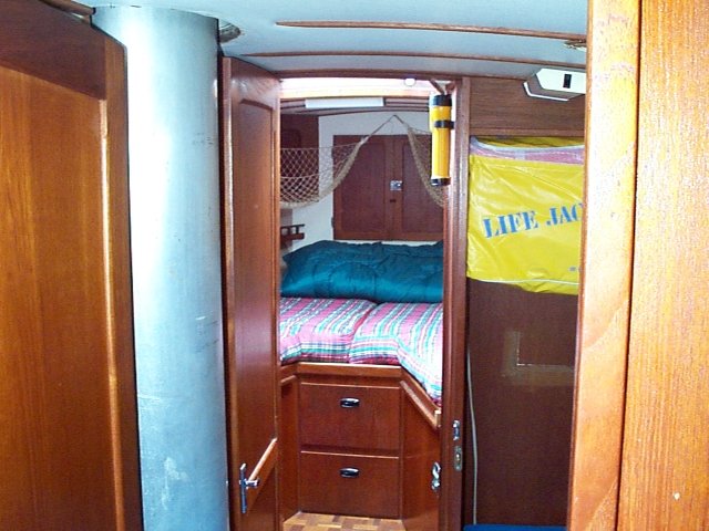 This is a view of the V-berth, and the third cabin.