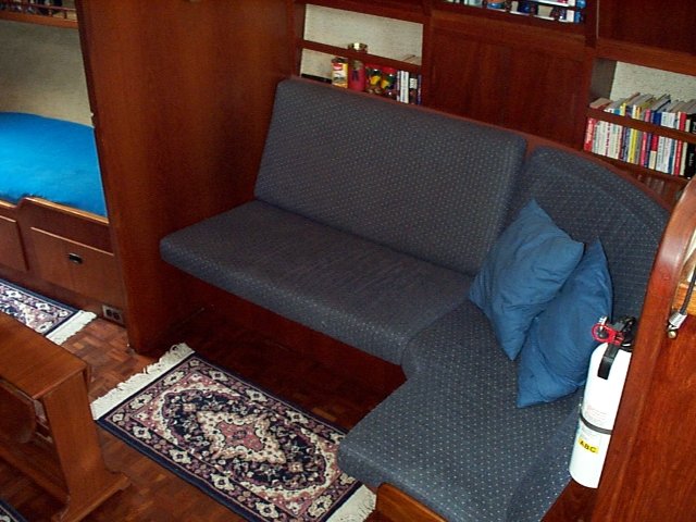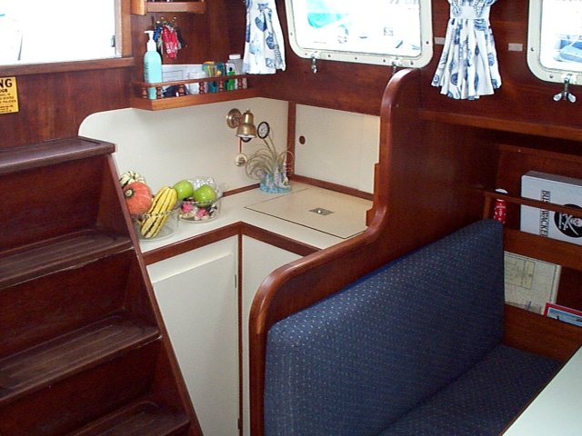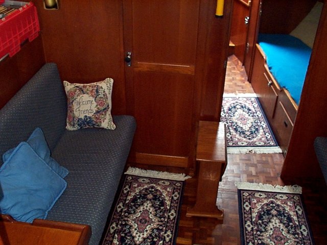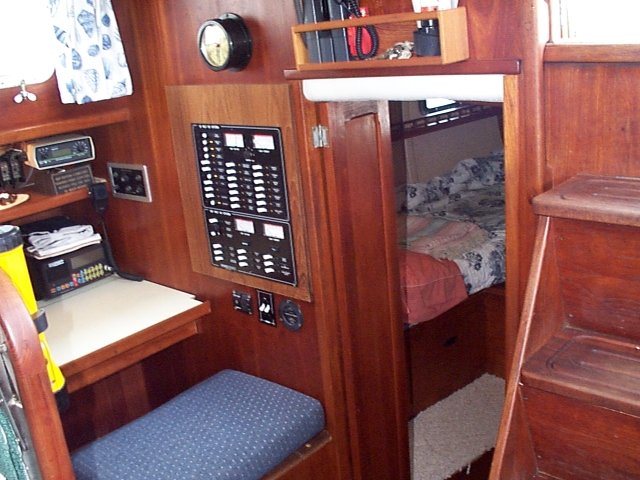 Looking further back we see the navigation station and the aft cabin.