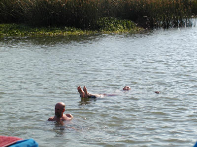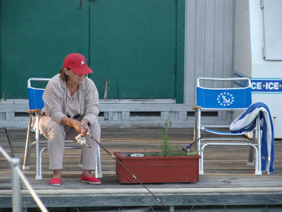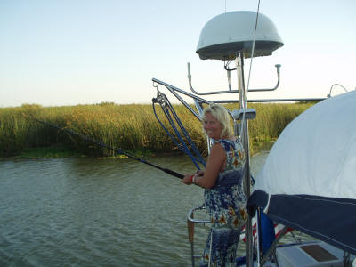 Karen doing some fishing. The Mercury OB had a little prop problem but was back on