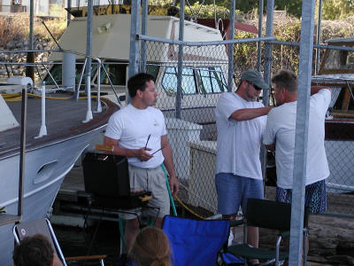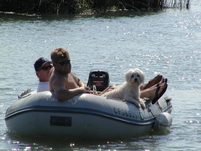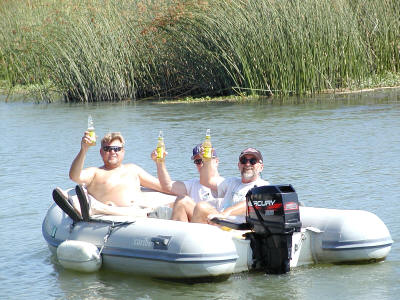 Ann doing some fishing. Ron and Jeff in the dink (watch out for my wake Jeff)