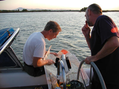 Without the Bushwacker to follow, Dennis and Barry had to break out the chart. Dennis, Susi's "cabin boy!"