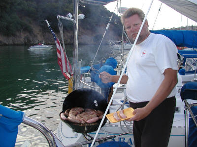 Meat fest 2003? Love the BBQ, Jeff wiping up another desert. Karen working on some snacks.