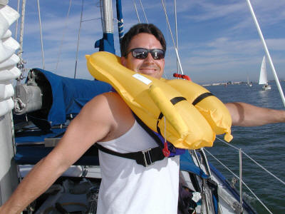 Jeff tossed his life vest down and it inflated. Guess it would have worked . Mr. Luke also wanted in on the joke.