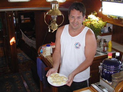 Jeff was wild in the Galley wiping up cheese cake, deviled eggs