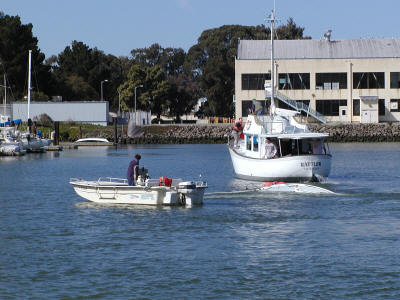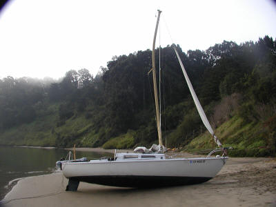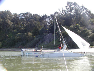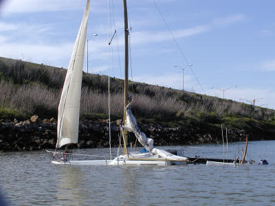 The keel had fallen of this boat and it flipped. They spent all night towing it back here