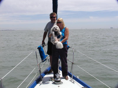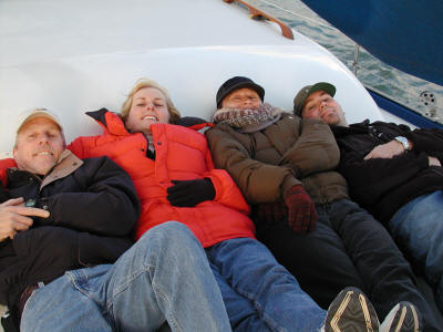 Pictures of us taking a ride in the ski boat after a long day of boat projects.