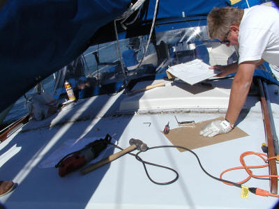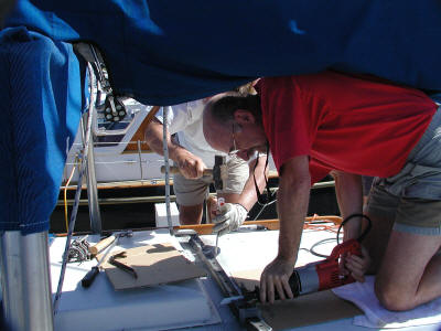 The mizzen was easy, about an hour. The main was another story. Barry operated the Sawzall, while I chiseled and cut.