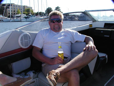 Time for a ride in Patty's 1952 Chris craft. Jeff shows up straight from the track when he hears the word party.