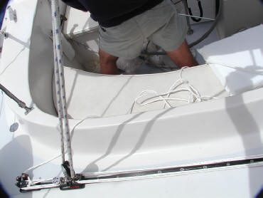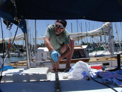 We started the weekend off with what I thought was a small project, replacing the main and mizzen travelers.