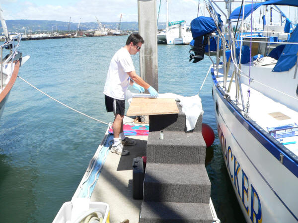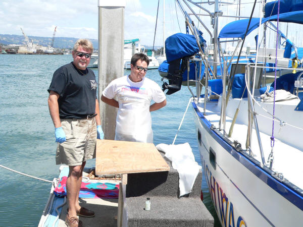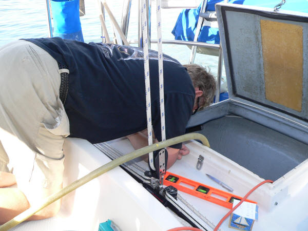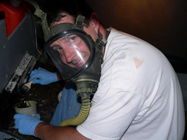 I offered to go in the hole and finish the fiberglass but Jeff said I already had enough brain damage