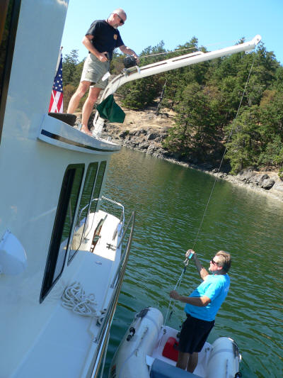 Lowering the dink, or as it became known the crab pot tender. Now that's an engine room
