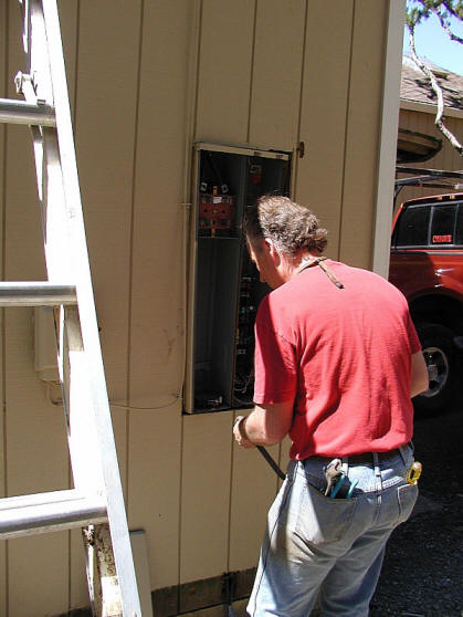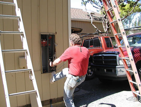 Perhaps we should cut the PG&E wires before we electrocute ourselves kicking in that entrance panel?