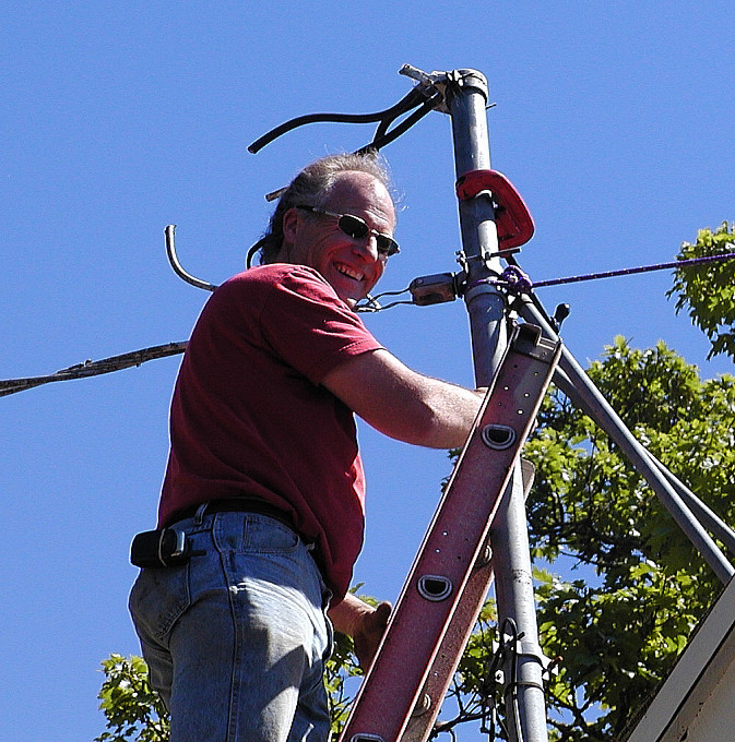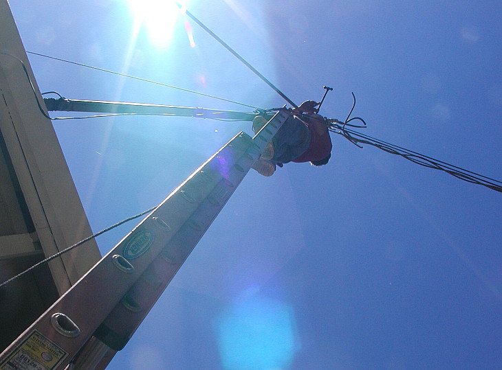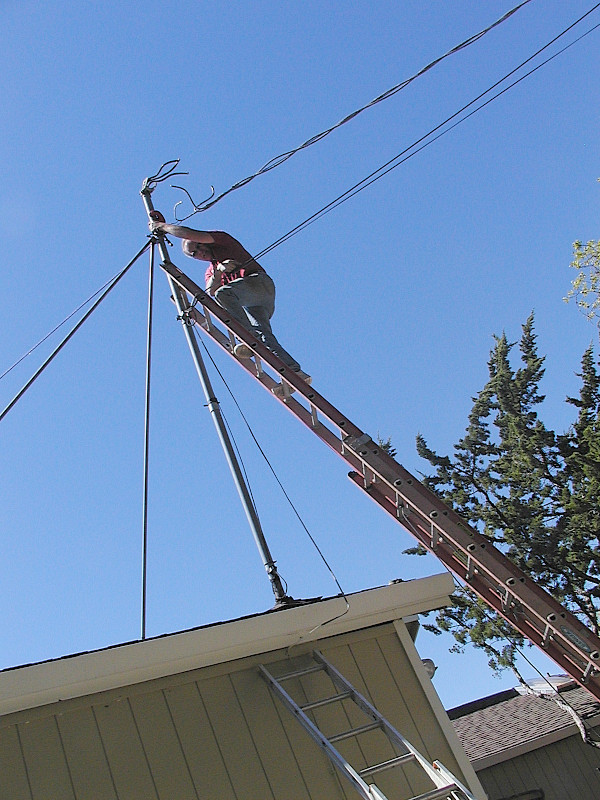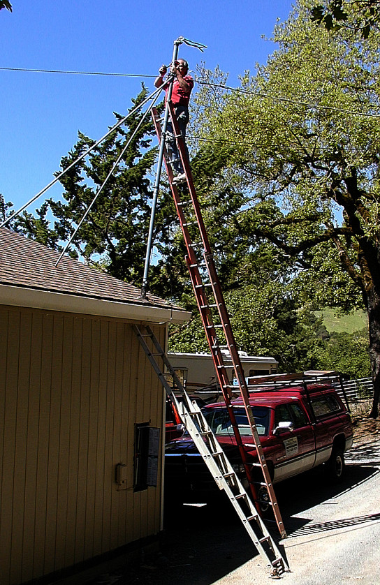 And he tells me he's afraid of heights. So am I but I'm not up there on that ladder....
