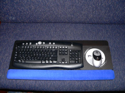 I also added a wireless keyboard and mouse to make surfing possible from the