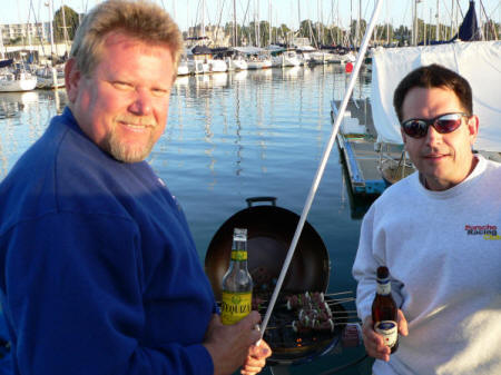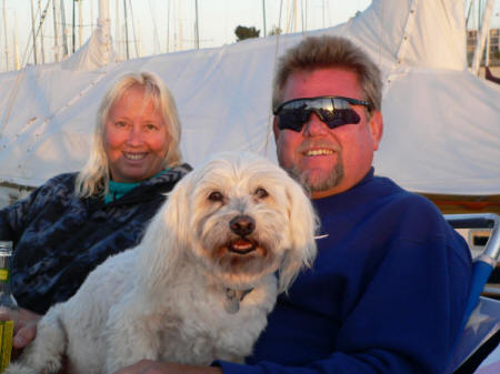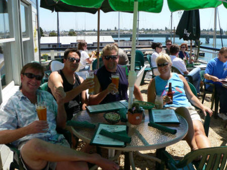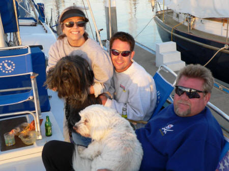 Enjoying sun, drinks, food and dogs on deck