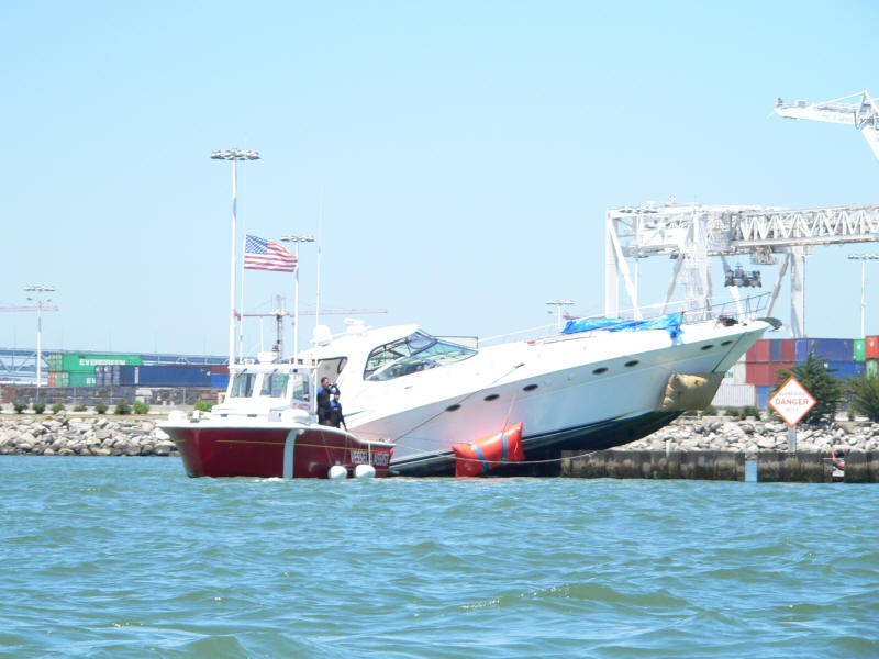 51' power vessel on the rocks, 17 people aboard,