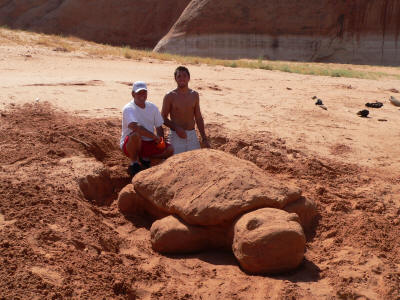 This family made a sand turtle. More narrow passes.