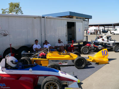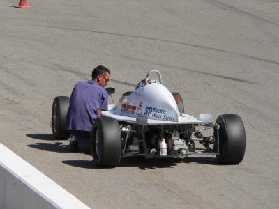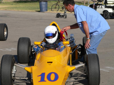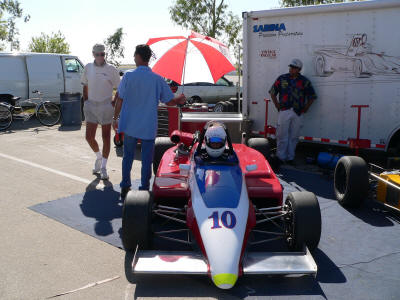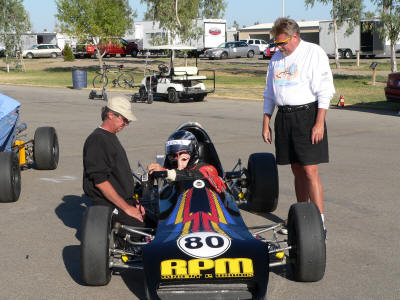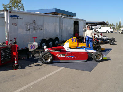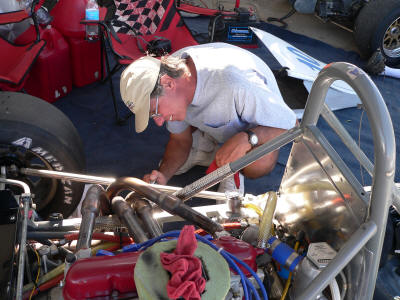Brother Bob doing some final prep on Tim's car. Mark on the track with Vince