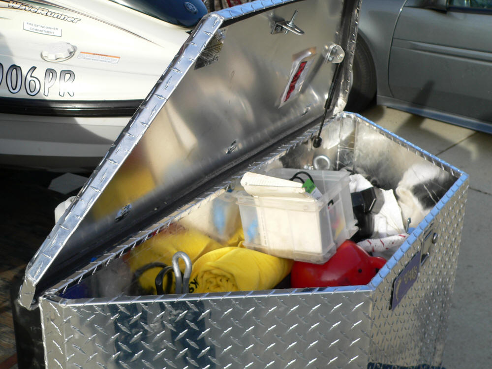 Many extras. Oil, tools, plugs, anchors, float balls, and more.